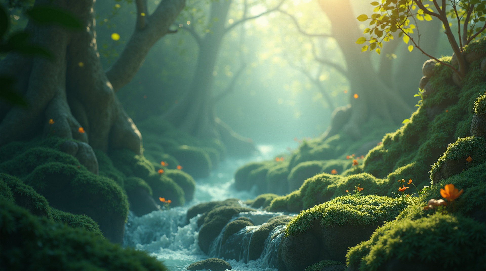 An organic-flowing experience exploring digital nature. Background that breathes - slow, rhythmic pulsing.